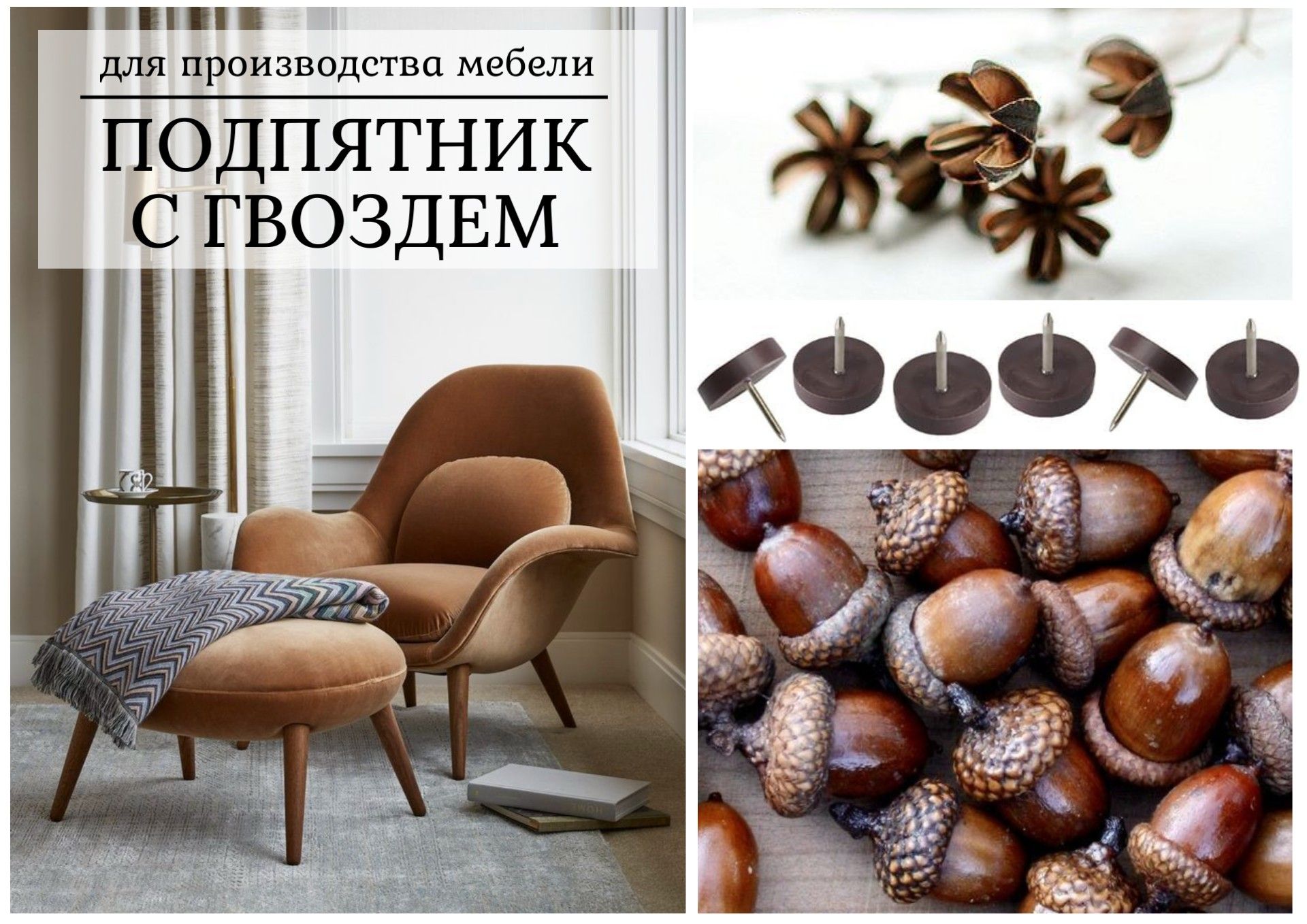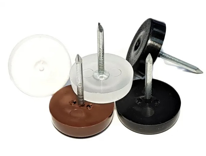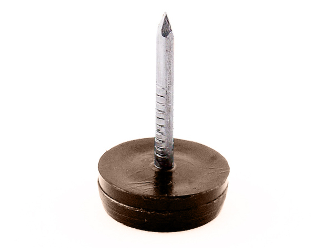 Среди комплектующих незаменимых при производстве мягкой мебели, такой как стулья, кресла, а также часть диванов на ножках, невозможно обойтись без такой простой вещи как подпятник. Он служит для защиты напольного покрытия от повреждений при перемещении мебели, а также предохраняет низ мебели от воздействия влаги. Есть несколько вариантов крепления подпятников, один из них – подпятник с гвоздиком, который крепится к мебели посредством вбивания.